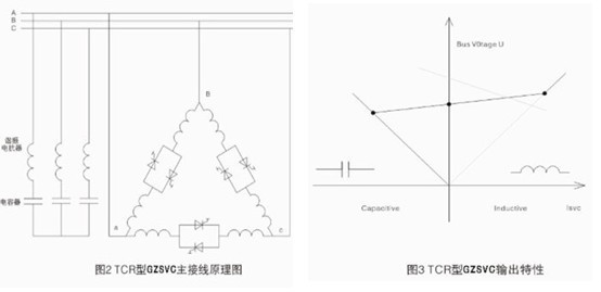 高壓靜止型無(wú)功動(dòng)態(tài)補(bǔ)償裝置(GZSVC)是一種典型的柔性交流輸電裝置(Flexible AC Transmission System,FACTS)。該裝置應(yīng)用于輸電網(wǎng)可快速改變其無(wú)功出力,為電力系統(tǒng)提供動(dòng)態(tài)無(wú)功電源、調(diào)節(jié)系統(tǒng)電壓;將供電電壓補(bǔ)償?shù)揭粋€(gè)合理水平,增加線路的輸電能力并加強(qiáng)對(duì)低頻振蕩的阻尼以及抑制同步振蕩;另外,GZSVC通過(guò)動(dòng)態(tài)調(diào)節(jié)無(wú)功出力,抑制波動(dòng)沖擊負(fù)荷運(yùn)行時(shí)引起的母線電壓變化,有利于暫態(tài)電壓恢復(fù),提供系統(tǒng)電壓的穩(wěn)定水平。該裝置應(yīng)用于配電電網(wǎng)時(shí),如電氣化鐵路、冶金等工業(yè)用戶能夠有效控制無(wú)功功率,提高功率因數(shù),降低非線性負(fù)荷所引起的電壓影響和諧波干擾,使三相負(fù)荷平衡化,改善電能質(zhì)量,提高用戶的生產(chǎn)工效,提高產(chǎn)品質(zhì)量和降低能耗。