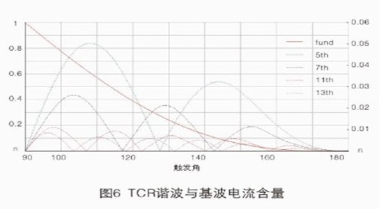 TCR電流為非正弦波,含有諧波成分,特征諧波主要為3、5、7、11和13次諧波,諧波含量如圖6所示。
